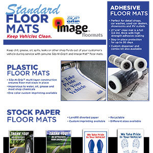 Slip N Grip Poly backed plastic coated floor mats come in 1000ct. boxes. These floor mats will save your business time and money by protecting your customers vehicle/investment. The coating protect the floor mat from falling apart in wet conditions.